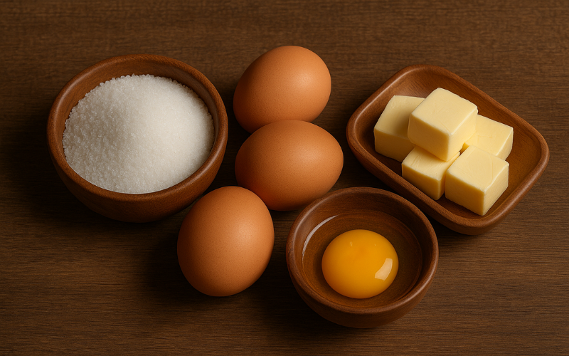 Nếu bột làm bánh là linh hồn, thì nguyên liệu làm bánh chính là trái tim tạo nên hương vị và cảm xúc cho chiếc bánh. Đường mang đến vị ngọt dịu dàng, trứng góp phần tạo nên độ bông mềm, còn bơ lan tỏa hương thơm béo ngậy khiến chiếc bánh thêm quyến rũ.